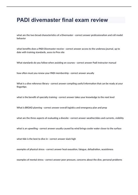Read Online padi divemaster final exams iBooks Gutenberg